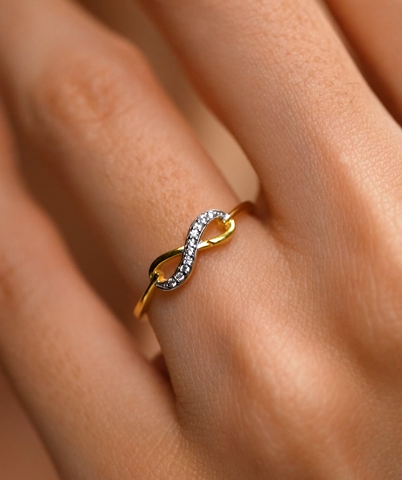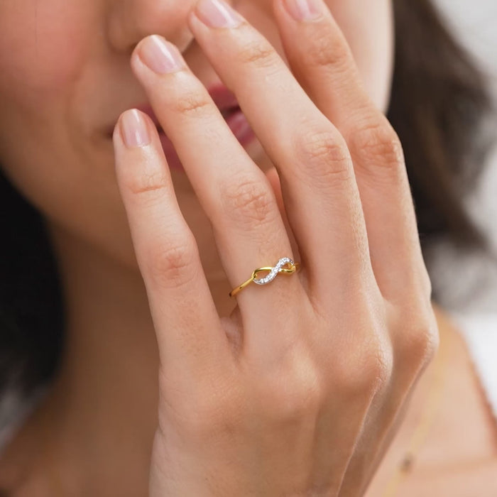 Elegant gold vermeil ring featuring an infinity design adorned with sparkling diamonds, symbolizing eternal love and timeless beauty.